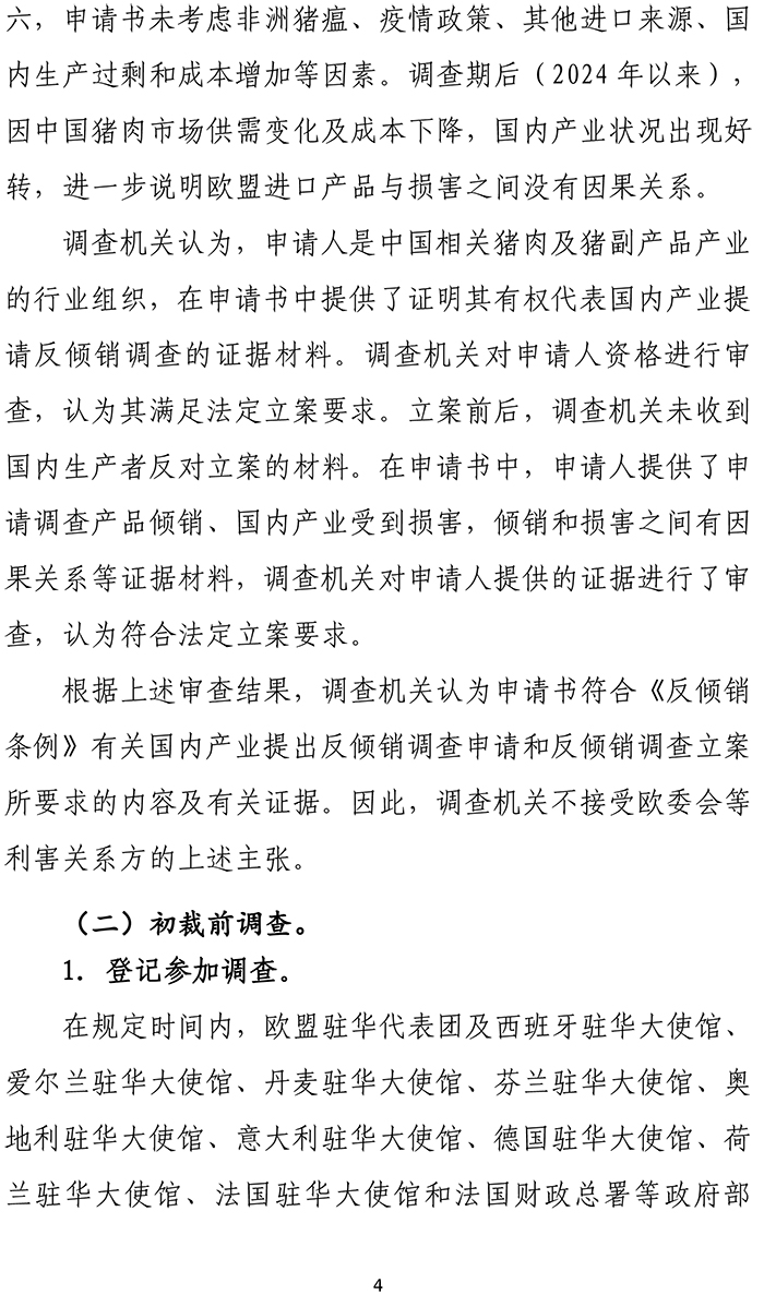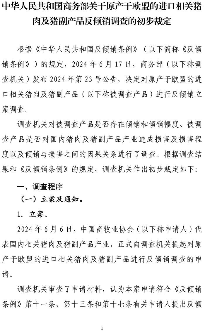 ?中華人民共和國(guó)商務(wù)部關(guān)于原產(chǎn)于歐盟的進(jìn)口相關(guān)豬 肉及豬副產(chǎn)品反傾銷(xiāo)調(diào)查的初步裁定